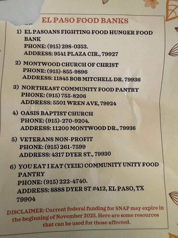 Sabemos que estos tiempos han sido especialmente difíciles para muchas familias de nuestra comunidad. Con el cierre del gobierno y otras circunstancias de la vida, algunas familias pueden estar enfrentando incertidumbre o dificultades para cubrir sus necesidades diarias. Por favor sepan que están en mis pensamientos y oraciones, y que todo el equipo de Douglass está con ustedes.