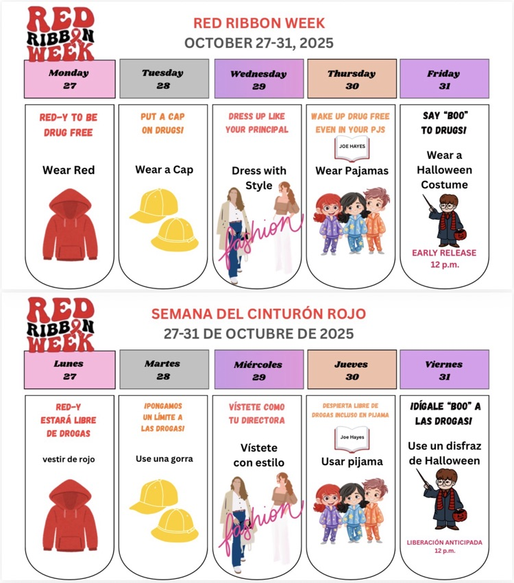 🎃 Friday: Wear your Halloween costume — Say “Boo” to Drugs! (Early release at 12 p.m.)
